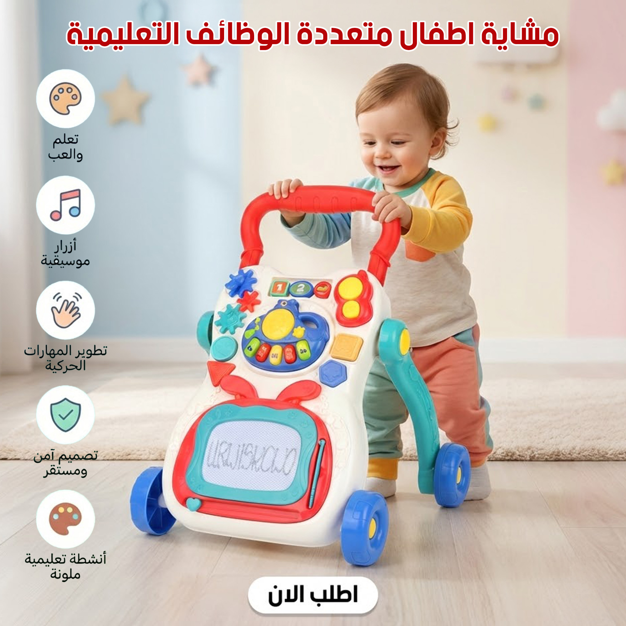 خلي أول خطوات طفلك مليانة ثقة وأمان، ومعاها لعب وأنشطة تنمّي ذكاؤه وإبداعه من أول يوم! 🎶🧸 💡 مميزات المنتج: 1️⃣ تصميم ثابت وآمن المشاية مصممة بهيكل مثلثي ثابت يقلل مركز الجاذبية، وده بيخليها أكثر أمان للطفل وصعبة تتحرك أو تتقلب بسهولة. 2️⃣ تحافظ على صحة الساقين بفضل الهيكل المريح وميزة تعديل الارتفاع، المشاية بتساعد الطفل يمشي ويقف بشكل صحيح وتمنع تقوس الساقين. 3️⃣ مركز أنشطة متكامل لوحة أنشطة قابلة للفصل فيها ألعاب تعليمية متنوعة: أشكال هندسية، معدات دوارة ملونة، بيانو/جهاز إلكتروني ممتع، ولوحة رسم. بتساعد على تنمية الذكاء الحسي والحركي، وكمان بتطور التنسيق بين العين واليد. 4️⃣ خامات آمنة وجودة عالية مصنوعة من بلاستيك Acrylonitrile Butadiene Styrene (ABS) آمن 100% وخالي من المواد السامة، مع حواف ناعمة تحافظ على سلامة الطفل. 5️⃣ سرعة قابلة للتعديل تقدر تضبط مستوى السرعة بسهولة عن طريق برغي التثبيت حسب عمر الطفل وسرعته في التعلم، يعني مرونة أكبر وأمان أكتر. 📦 تفاصيل سريعة: 🔹 الخامة: بلاستيك ABS آمن للأطفال 🔹 المميزات: مركز أنشطة تفاعلي + موسيقى + ألعاب تعليمية + لوحة رسم 🔹 الارتفاع: قابل للتعديل حسب طول الطفل 🔹 خاصية الأمان: هيكل مثلثي ثابت – سرعة قابلة للتحكم 🔹 مناسب: من عمر 6 شهور فما فوق ✨ مع المشاية التعليمية طفلك هيتعلم ويمشي بخطوات واثقة، وكمان يكتسب مهارات ذهنية وحركية من بدري! 💖